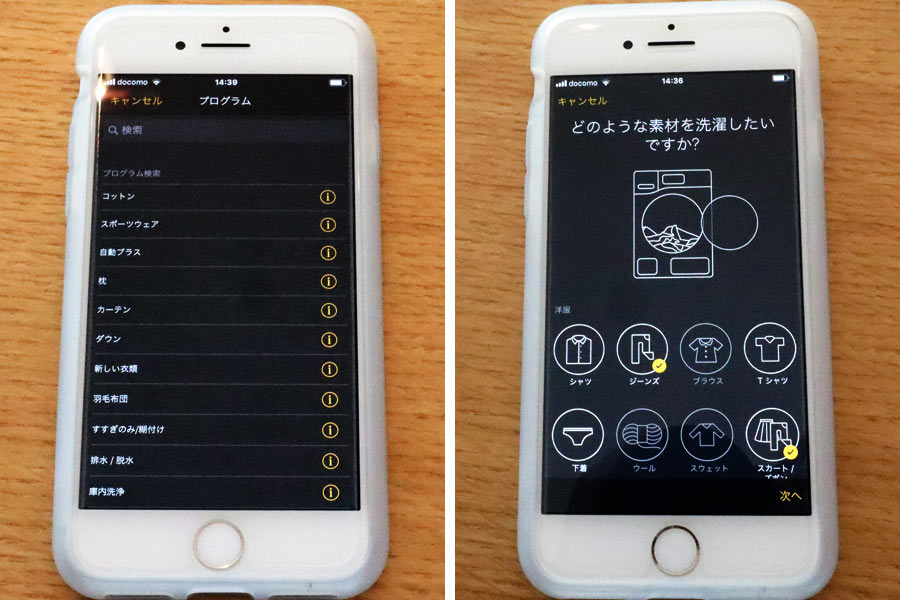 より細かく設定したい場合も、衣類の種類を選び→衣類の色を選び→繊細さを選び→汚れ度合いを選べば→推奨プログラムが自動で設定される