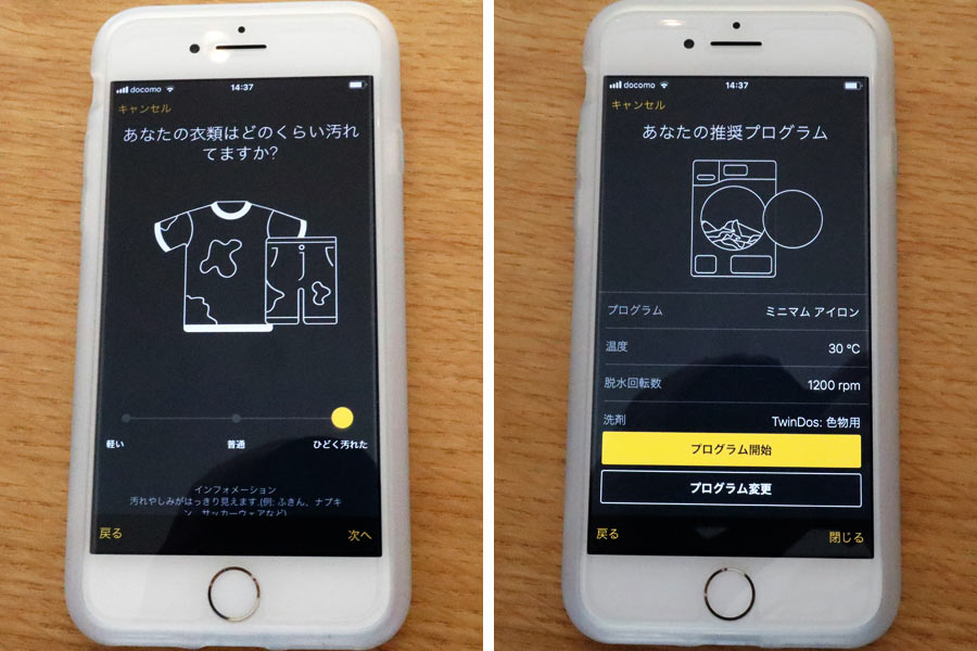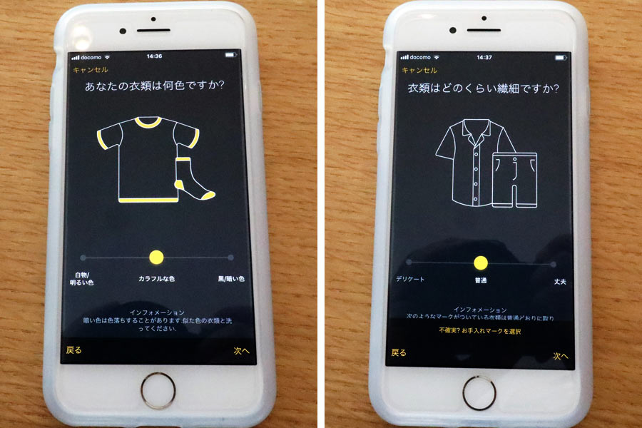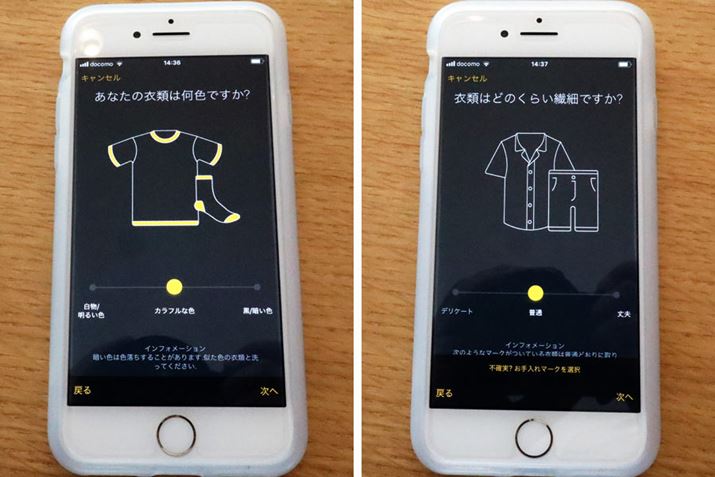 スマホアプリを使って、質問に答えていくだけで最適な洗濯モードが簡単に設定できるアシスタント機能は便利