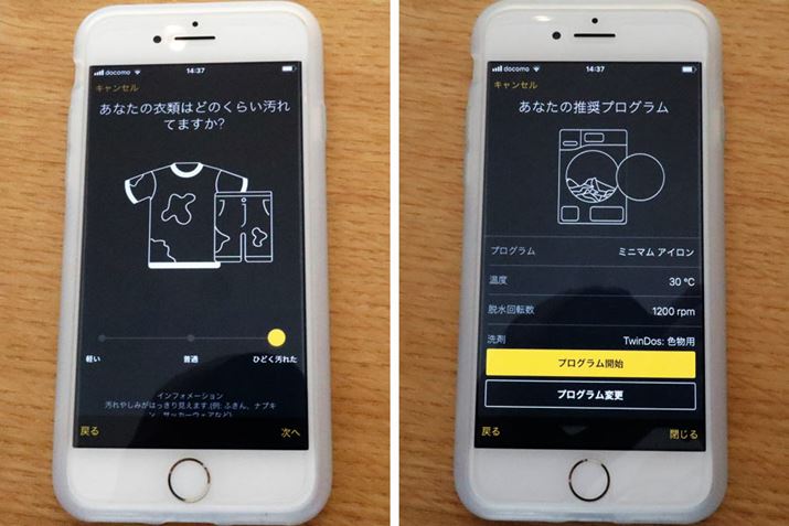 ミーレの洗濯機は、衣類の素材や汚れの種類・量などによって細かく設定できるのが大きな特徴ですが、複雑な設定を苦手だったり面倒だと感じる人も多いと思います。そんなときは、スマートフォンアプリの「Miele@mobile」アプリのアシスタント機能を使えば、自分がやりたい洗濯をオートで設定できるのです。今後は、ほかのミーレ製品でも同アプリ連携を行う予定とのこと。