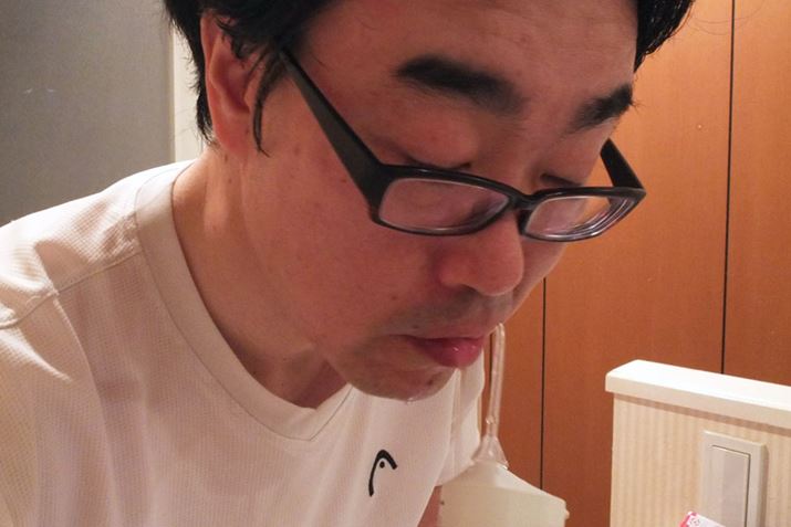 洗面ボウルの上に顔を突き出した状態で、水が飛び散らないよう、口を少しだけ開けた状態で洗浄。しっかり閉じると口の中が水でいっぱいになるので、口から水を垂れ流しながら洗います。「垂れ流し」は心情的に抵抗がありますが、これは慣れるしかないです