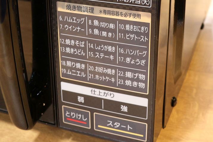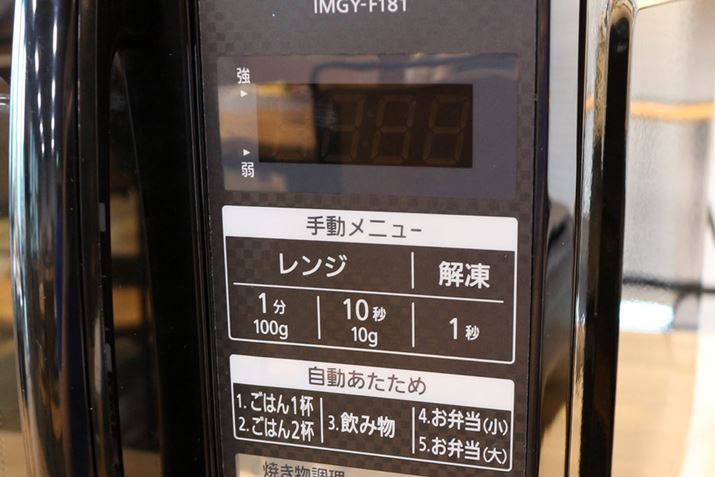 オーブン機能は搭載しないシンプルな電子レンジ。よく利用しそうな「ごはん」「飲み物」「お弁当」は、ボタンひとつであたためられるようになっています。もちろん、手動で設定も可能