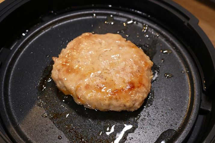 約7分後、ハンバーグが焼き上がりました(下の動画参照)。