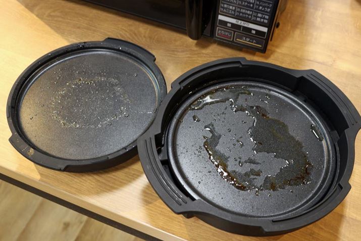 容器はそれほど汚れていませんが、プレートには脂がたっぷり。不要な脂が落ちるように、波型プレートが発売されるといいと思いました