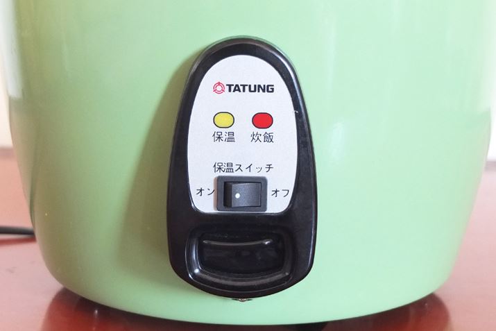 日本仕様の製品には、加熱スイッチと保温スイッチの2つのみ搭載。保温スッチを入れて加熱スイッチを押すと、加熱終了後に自動的に保温モードになります。保温スッチを入れていないと、加熱終了後は電源オフに。ちなみに台湾仕様のモデルはスイッチがひとつだけで、加熱終了するとそのまま保温モードに移行、電源コードを抜くことで保温モードを解除します
