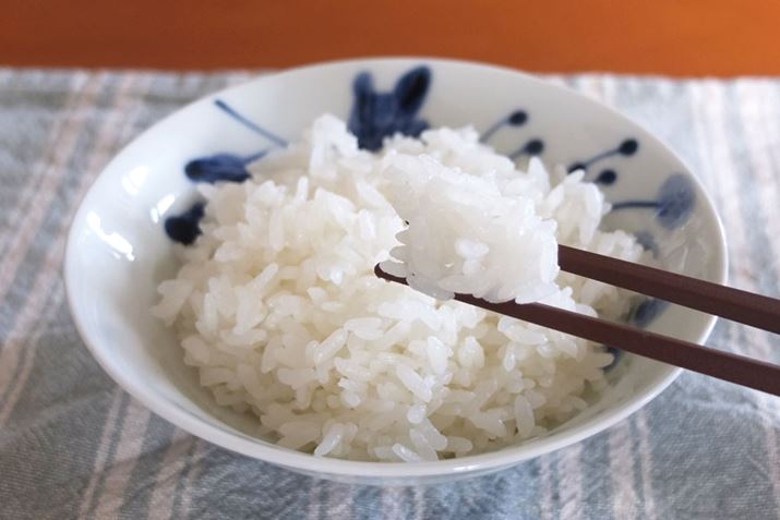 ご飯茶碗によそうと、米の周りのおねばがかなり少ないのがわかります。食べると口の中で1粒ひと粒がほどけますが、硬い食感というわけではなく、噛むとモチっとした弾力がありました