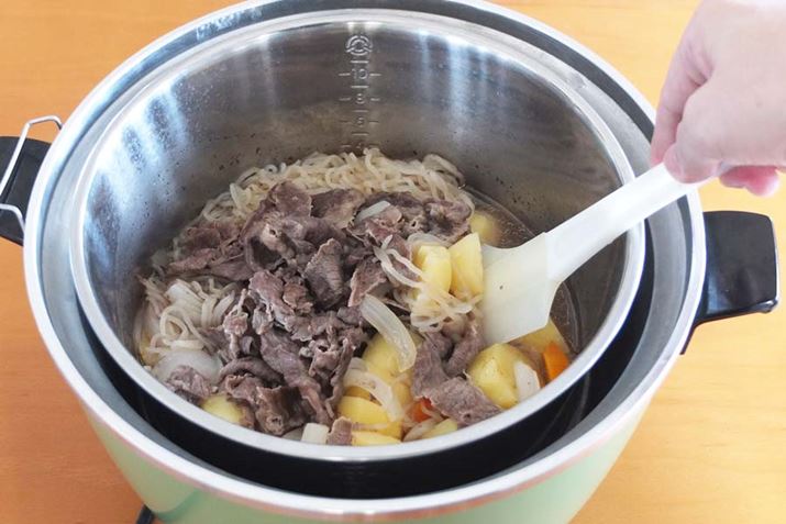 煮込み調理についても、スイッチを入れたらほったらかしでほかの料理を作れるのは便利。ただし味は薄めになりがちなので、通常の煮込み料理より味付けを少し濃くし、できるだけ水を加えず調理するほうがいいでしょう。最初に食材と調味料をよく絡めてから加熱したり、内釜内にクッキングペーパーなどで落としぶたをするのも食材にしっかり味を付けるのに有効だそうです。