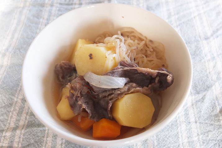 ジャガイモはメイクイーンを使用。そのせいもあるかと思いますが、直火のようにつゆが沸騰しないので、ジャガイモの角もカットしたときの形がしっかり残っています。なのに食べるとしっとりした食感で、火の通りは文句なしでした