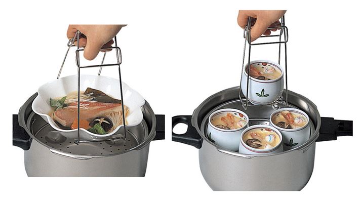 蒸し調理に関しては、中華せいろなどが特になくても本格調理が手軽にできてとても便利です。ただ、外釜の底に蒸し皿を敷き、その上に食材を置いて調理する場合、出来上がった皿を取り出すのが大変。外釜にうっかり触ると火傷してしまいます。せいろの中の食器を取り出すのに便利な“茶碗蒸しホルダー”が日本でも買えるので、電鍋を買うなら合わせて購入するのもいいでしょう。