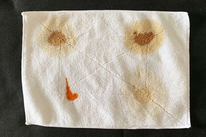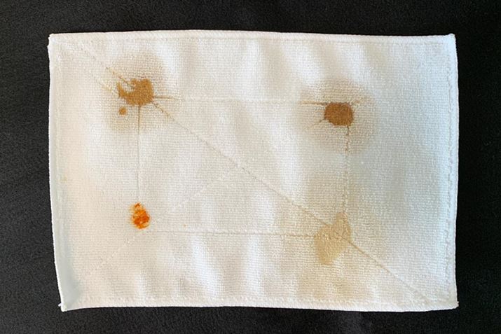 今回選んだものは、どちらの機種も洗濯時間が30分ということなので、同じ程度汚した布巾を使って、その洗浄具合を比較してみました。また、比較のために、30分のつけ置き洗いの結果も載せてあります。布巾はマイクロファイバータイプのもので、ウスターソース、しょう油、タバスコ、缶コーヒーをそれぞれスプーン1杯弱程度の量で汚しております。