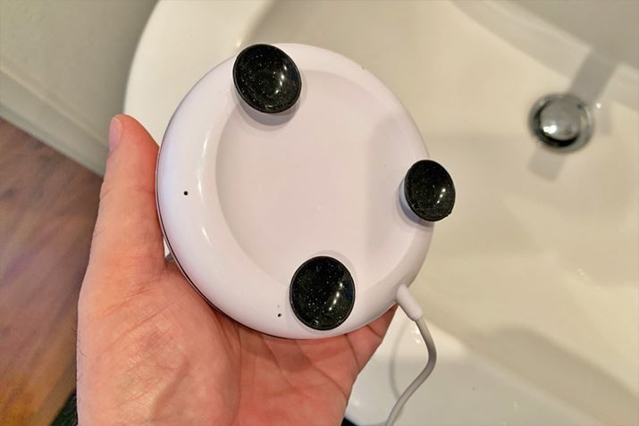 本体裏面にある吸盤で、洗面台に固定します。側面に取り付ける場合ケーブルは上向きにするほうがいいです