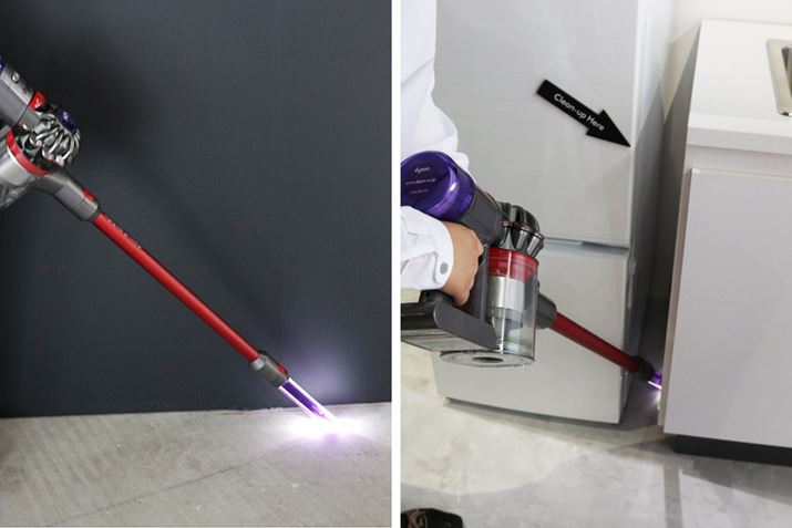 「LED隙間ノズル」は先端に装備されたLEDで照らしてくれるので、家具と家具の間などにあるゴミも目で確認しながら掃除できます
