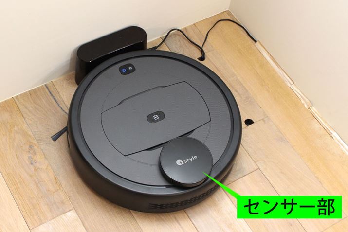 もちろん、充電がなくなってきたら充電スタンドまで自分で戻ります。本体上部に付いた、黒くて丸いユニットがレーザーセンサー部