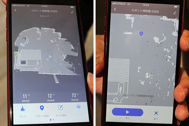 G300がマッピングした情報は、スマホアプリからチェックできます。同じくアプリを使って、エリア指定して清掃指示を出すことも可能