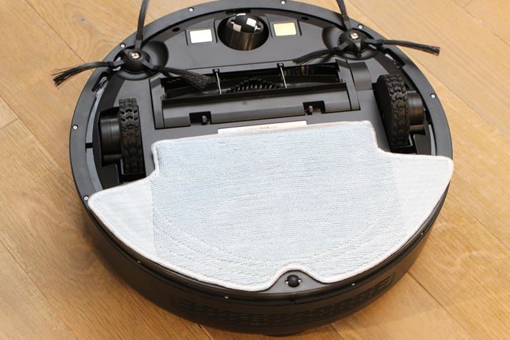 水を入れたパッドを本体の底面にはめて走行させれば、水拭き掃除ができます。なお、掃き掃除機と水拭きを同時に行うことも可能