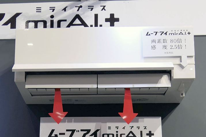 同社のエアコンはこれまで、360°センシング技術とAI技術を組み合わせた「ムーブアイmirA.I.」を搭載していました。これは、赤外線センサーで室内温度、人の体感温度、日射熱の侵入、外気温の変化などを検知し、運転状況や暖まりやすさ・冷えやすさなどをあらゆるデータからAI技術で分析し、人が「寒い!」などと感じる前に空調を自動で調整するという機能です。