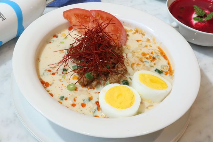 高木さん監修のレシピブックからまずは「豆乳冷やしベジ担々麺」を。麺の代わりにダイコンのベジヌードル、スープには豆乳を使用しています。これにより、一般的な担々麺が720kcal・糖質63gあるのに対して、ベジ担々麺は480kcal・20gと大幅にカット。こりゃいい! 実際に食べてみたところ、ごま油や甜麺醤、豚挽き肉などでしっかりとコクが出ておりおいしいです。1人分あたりダイコンを150g使うので、食べたあとの満足感も〇。