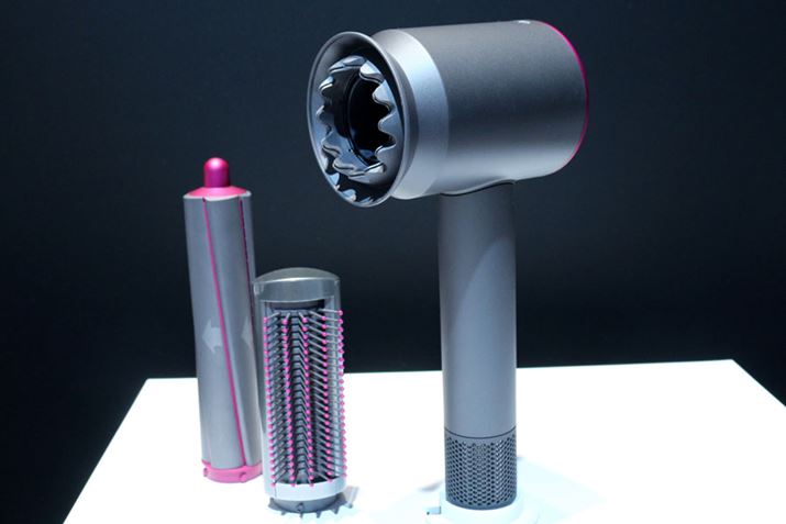 新アタッチメント「ジェントルエアーリング」を装着した「ダイソンスーパーソニック」(右)と、同日に発表された「ダイソン エアラップ スタイラー」の新アタッチメント(後述)