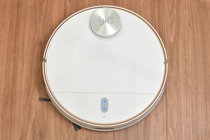 本体サイズは、約355(直径)×105(高さ)mm。ロボット掃除機としては一般的なサイズで、機能のわりには高さも抑えられているので、ベッド下にもスルスルと潜り込んでくれる。白を基調としたシンプルなデザインも好印象だ