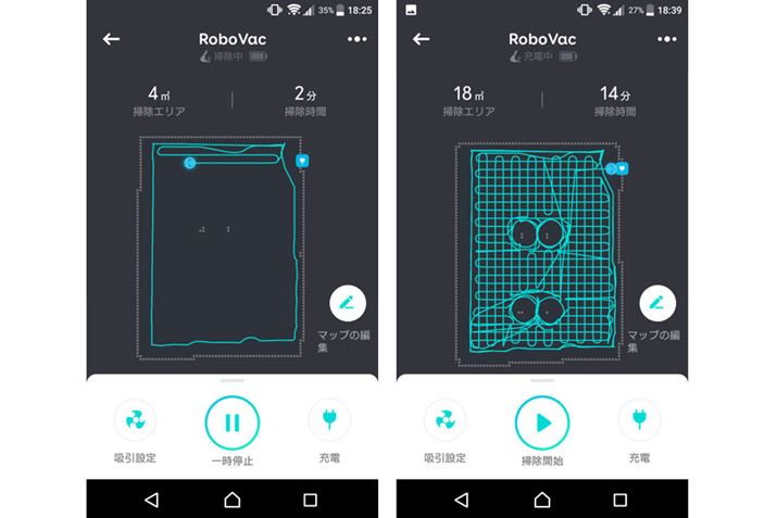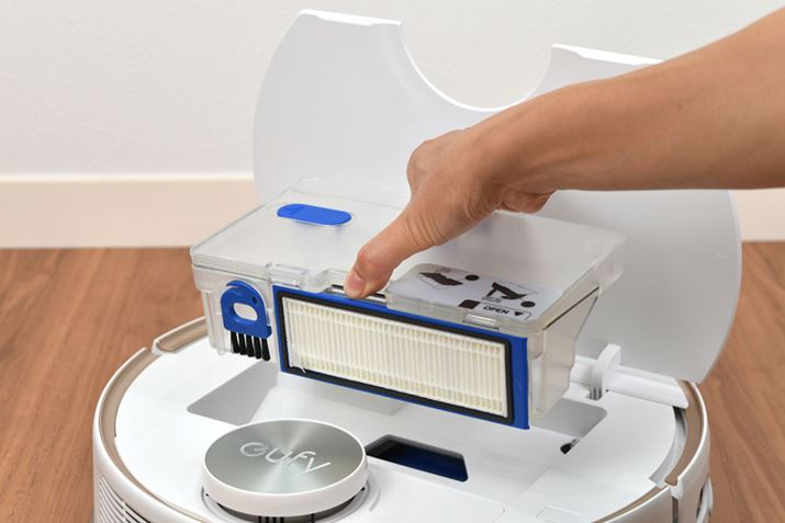 吸引力は、「RoboVac」シリーズで最高となる2,200Pa。下の動画では「吸引設定」は「標準」、「水量」は「小」に設定して清掃テストを行ってみたが、疑似ゴミとしてまいたパン粉を涼しい顔で取り除き、水拭きによってフローリングをピカピカに仕上げてくれた。ハイエンドモデルの名に恥じない、一級品の清掃力だ。