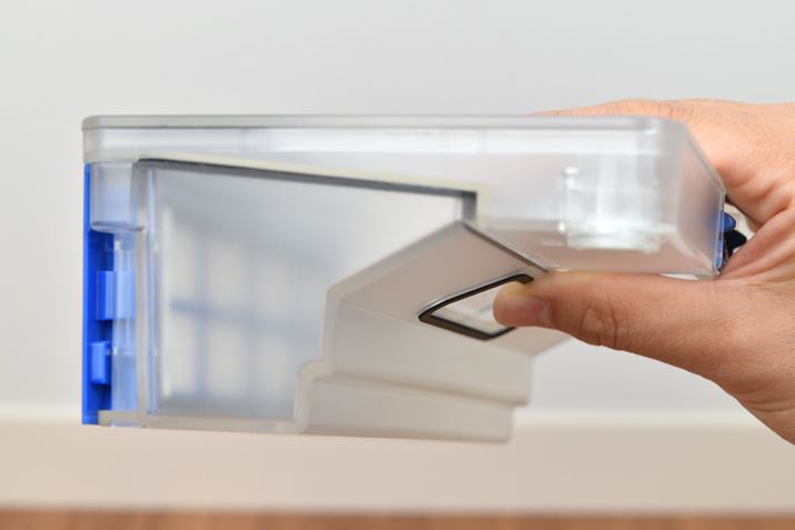 水タンクと一体となったダストボックスには天面からアクセスできる。ダストボックスが本体後方に配置されたタイプよりも着脱しやすい印象