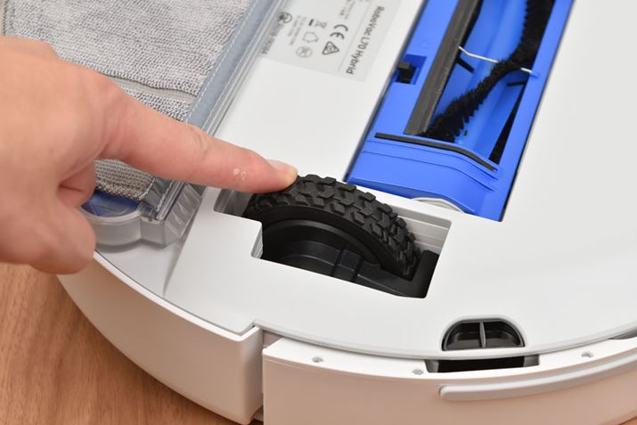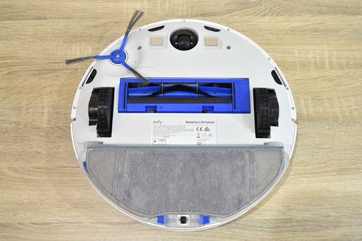 「L70 Hybrid」は、通常の吸引掃除と同時に水拭き掃除も行うことができるハイブリッドなロボット掃除機だ。本体底面前方のブラシでゴミをかき集めて吸引し、後方のモップで水拭きするというのが基本的な仕組み。