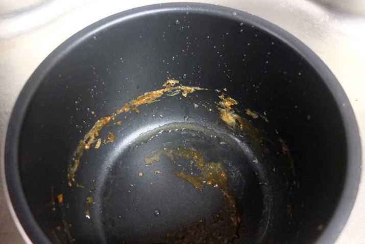 お手入れに関しては、圧力鍋なのでそれなりに手間がかかりますが、鍋がテフロン加工済みで汚れが落ちやすいのは超便利です。 ちなみに、電気圧力鍋の多くはテフロン加工済み。「こびり付き汚れを洗うのがめんどう」でガス式の圧力鍋を使うのがおっくうになることが多く、これだけでも本機を含む電気圧力鍋を購入するメリットは大です。