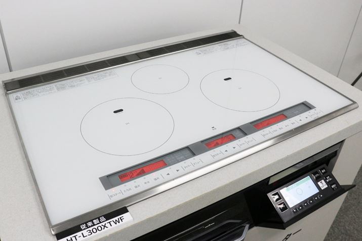 なお、「HT-M350T/HT-M150T」シリーズのラインアップは、ダブルオールメタル対応の「HT-M350KTWF」(トッププレート幅75cm)、「HT-M350KTF」(トッププレート幅60cm)と、鉄・ステンレス対応の「HT-M150KTWF」(トッププレート幅75cm)、「HT-M150KTF」(トッププレート幅60cm)の4機種。