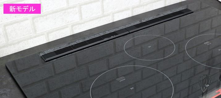 トッププレートの奥にあったフレームが廃され、排気口もミニマムサイズに。これらの改良により、段差の少ないすっきりとしたデザインを実現しました
