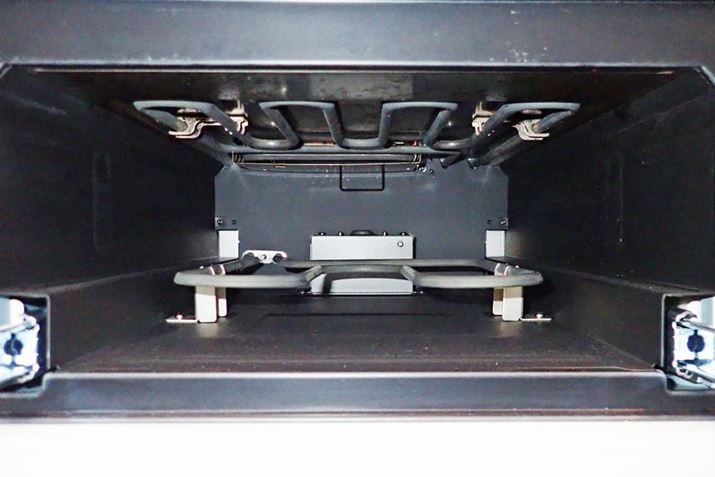 食材を入れた調理皿を、このようにグリル部にセットして調理します