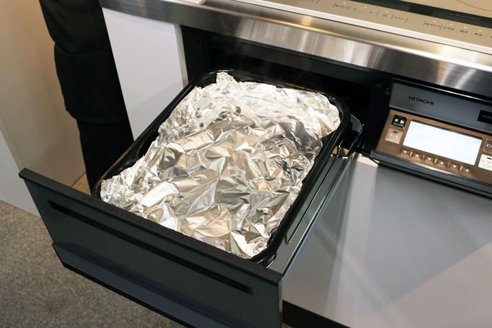 日立のIHクッキングヒーターは、グリル部で調理する際に専用の調理皿「ラク旨グリル」(波皿)や「ラク旨オーブン」(平皿)を使うのも特徴のひとつ。手動で調理するだけでなく、焼き物調理やオーブン調理、ノンフライ調理、蒸し物調理、魚煮つけ調理、過熱水蒸気調理など多様な調理方法に対応したオート調理を搭載しており、手間をかけずにおいしく仕上げることができます。また、調理皿を使うと庫内が汚れにくいので、お手入れが圧倒的にラクになるのも大きなメリット。