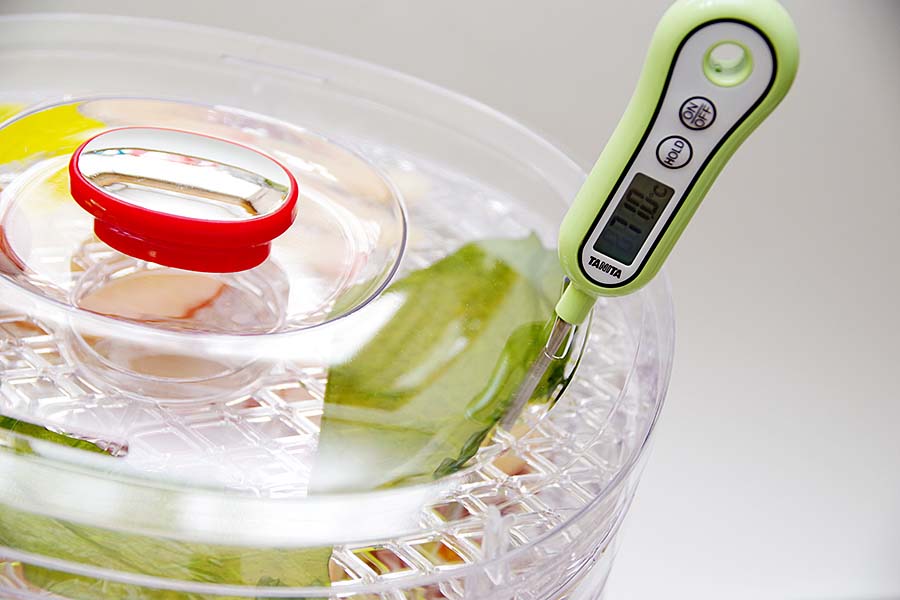 上部の透明ケースの中に並べた食べものを、指定した温度で乾燥できるという機械
