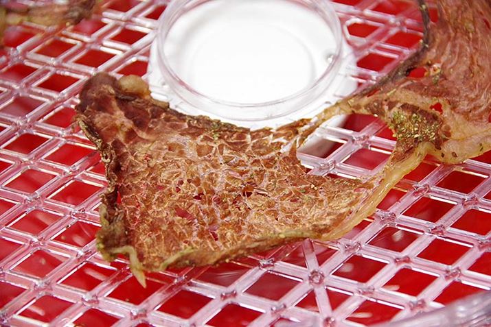カラカラのパキパキに乾燥。噛むと脂がじんわり溶けてきます。ビーフジャーキーというか宇宙食のしゃぶしゃぶっぽい(伝わりにくいたとえ)