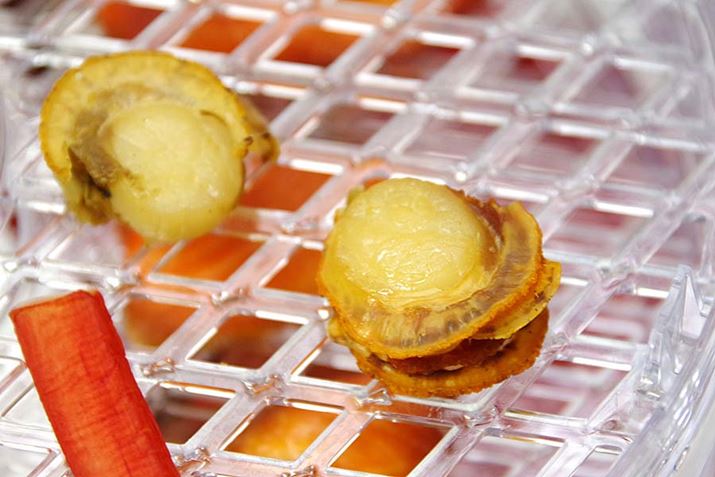 乾燥時間は食材の様子を見ながらやって、結果として6時間になりました。食材によっては乾燥前に下味をつけたり、薄切りにしています。