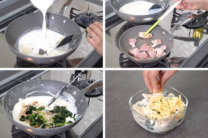 そこで今回はグラタンを作ってみました。ちなみにホワイトソースは手作りしたほうがおいしいですが、もちろん市販の缶詰を使ってもOK! また、今回の動画では冷凍ほうれん草を使っているように、下処理なしですぐに調理できる材料を用意すれば簡単に作れますよ。