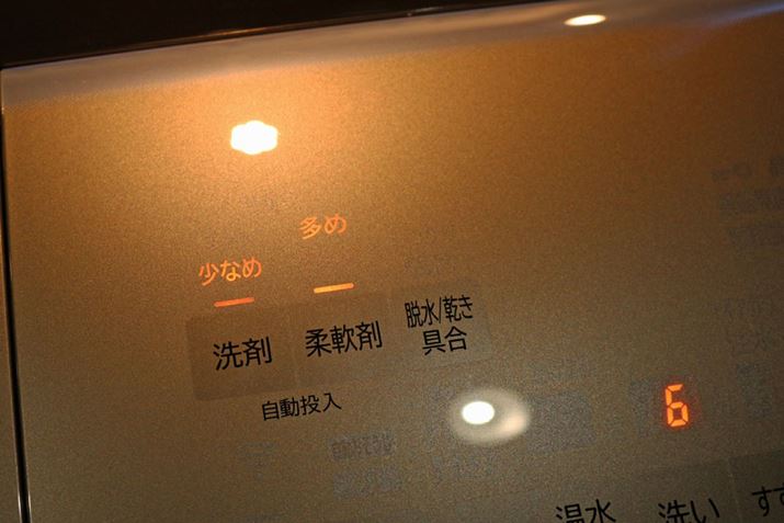 なお、自動投入機能を使う際は、操作部のボタンで機能をオンに。洗剤や柔軟剤の投入量を少なめ/多めで設定することもできます