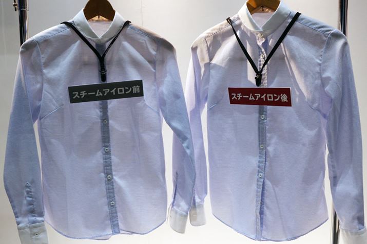 5分で仕上がるスチームアイロンコースでシワを伸ばしたワイシャツ。前身ごろの縦シワがなくなっていることがわかります
