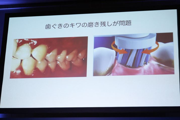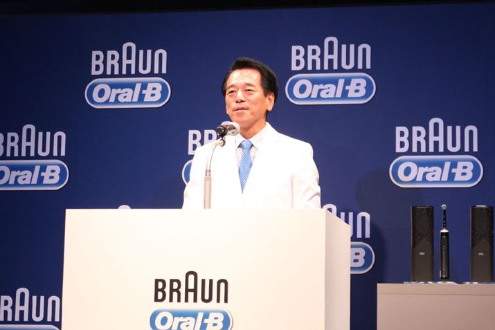 発表会では、歯科医師であり、日本大学の客員教授も勤める若林健史氏による、健康な歯を保つための「オーラルB ジーニアスX」の有効性についてプレゼンテーションが行われました。若林氏は、歯磨きを怠ったことによる歯周病や虫歯は万病の元であり、「オーラルB ジーニアスX」を使用することは、磨き残し予防に有効であると話しました。
