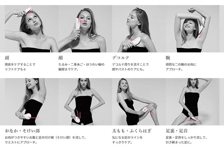 ボディラインやフェイスラインにすべらせるようにして使用します。頭皮から足裏まで、ほぼ全身のケアが可能。画像はアテックスの公式サイトより