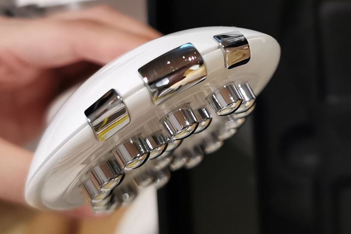電極針の高さは、配置によって最大7mmの差があります。この差は、体の曲線にフィットしてなめらかにすべらせることができるよう計算されたもの