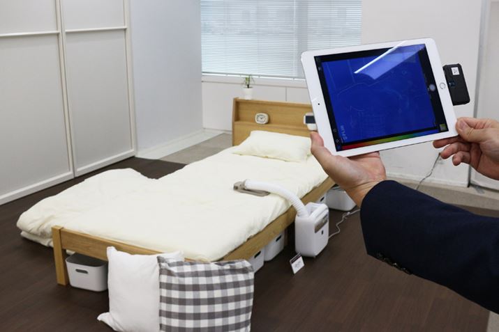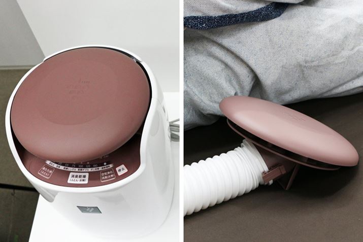下の動画は、2016年モデルまで採用されていた「ワイドアタッチメント」を装着した同社の布団乾燥機と、「きのこアタッチメント」を採用した新モデルとで布団乾燥した際の温風の広がり方のデモンストレーション。新モデルのほうがスピーディーに温風が広がるだけでなく、送風口の背面まで温風が素早く回り込み、温めムラも少ないことがわかります。