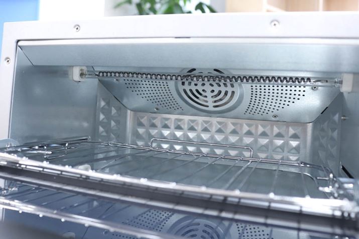 内部の構造は前モデルと同様。カーボンヒーターだけでなく、循環ファンも搭載。さらに上下のカーボンヒーターのそばには反射板を配置し、熱を効率よく循環させてすばやく庫内温度を上げる仕組みです