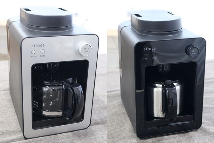 ガラスサーバーが付属するSC-A351(左)と、ステンレスサーバーが付属するSC-A37(右)。幅は約16cmで、前モデルよりさらに1cmコンパクトになりました