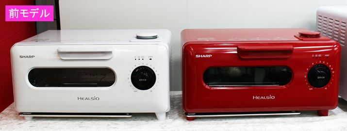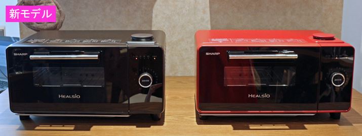 2017年に発売された「ヘルシオ グリエ AX-H2」と比べると、新モデルは丸みがなくなり、すっきりとした印象に。カラーバリエーションも、ホワイトがなくなり、レッド系とブラック系のラインアップとなります。サイズは412(幅)×306(奥行/取っ手含まず)×227(高さ)mm