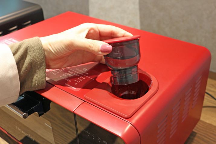 過熱水蒸気を発生させるために欠かせない水タンクは、従来どおり天面に装備。水タンクをセットすると、電源がオンになる仕組みとなっています