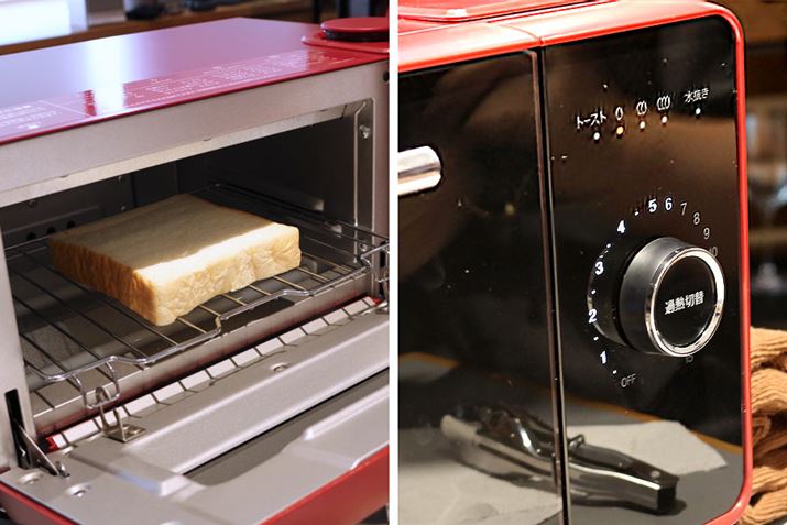 そのほかのモードに関しては従来どおりなので、焼き色が付いた普通のトーストももちろん調理可能。その際も、過熱水蒸気で焼くため、パンに含まれる水分の蒸発は抑えられ、表面はこんがり、中はしっとりと焼き上がります。また、クラスト(パンの耳)がサクサクだけれど硬すぎない焼き加減で仕上がるのもポイント! 今回は生食パンをトーストしましたが、スーパーなどで販売されている食パンでも水を補いながら加熱するので、おいしく焼けるそうです。