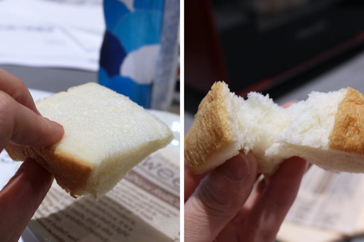 試食するために手に取ると、水分がたっぷりと含まれているからでしょうか、トーストしたとは思えないほどの重みが……。そして、食べてみるとふわふわでしっとりとしており、バターの香りや甘みもたっぷり感じられました