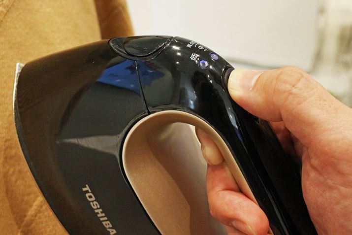 電源コード付きタイプには電動ポンプが搭載されているので、手もとにあるボタンを押してスチームを放出する仕様となっています