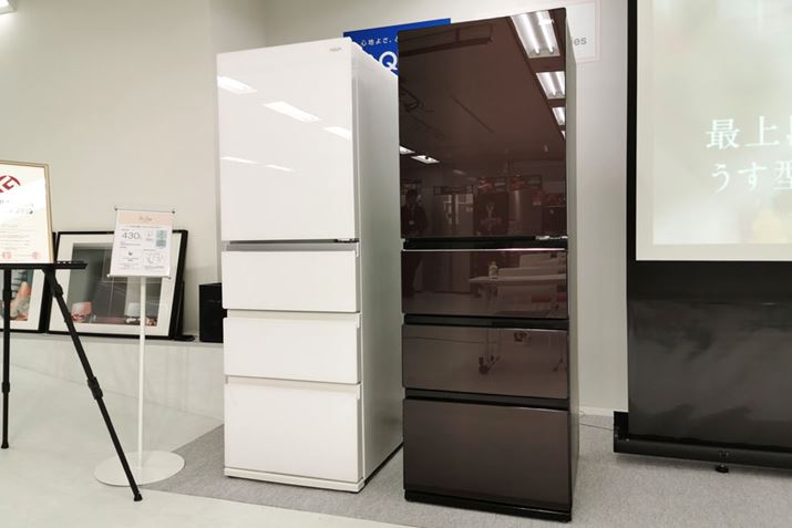 アクアは、業界初となる“冷蔵室から野菜室を見渡せる”冷凍冷蔵庫「Delie(デリエ)シリーズ」を発表。プレミアムラインの「VZシリーズ」と、スタンダードライン「Vシリーズ」の2ラインをラインアップし、それぞれ定格内容積430、458Lの2種類を用意しました。
