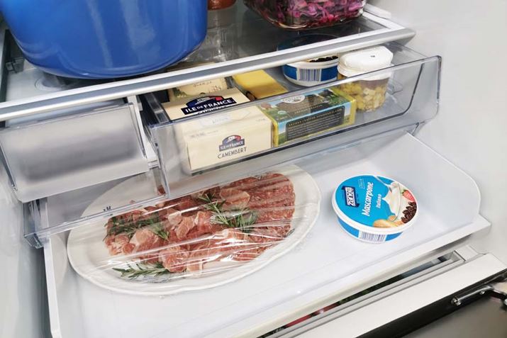 幅47pの「フルワイド旬鮮チルド」は、大きなトレイも重ねることなく収納できるため、使いやすいだけでなく、重ね買いや使い忘れのリスクを低減できます。