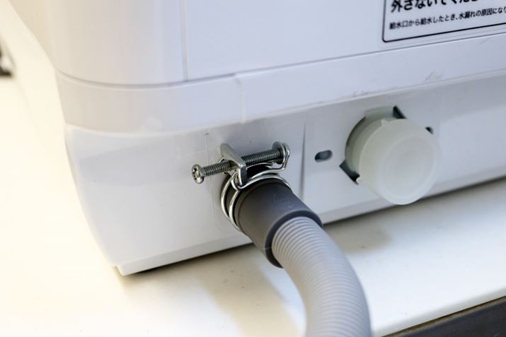 排水ホースは水圧で動いてしまうので、排水ホースを結束バンドなどで固定しておけば安心。固定用の吸盤は付属しているのですが、吸着力はそこまで強くないです